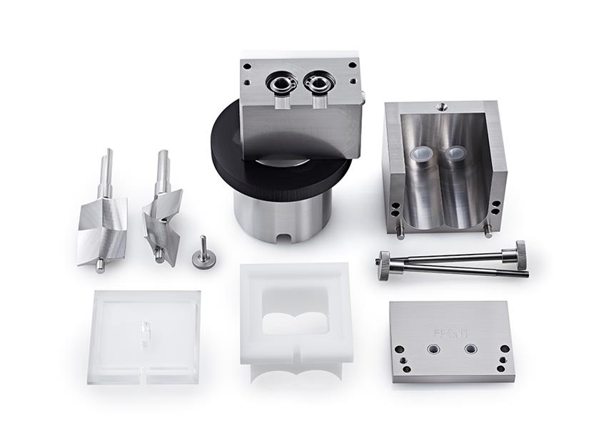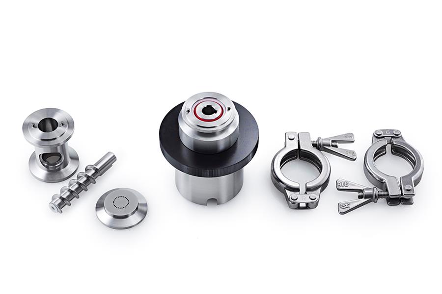 ▲ 混合制粒附件:全高或半高,标准罐的工作能力约为60-80ml(30-50克/湿重,取决于产品);力矩耦合限制器设置为8Nm;装有混合制粒附件的外形尺寸480x585x375mm。
