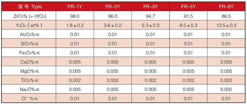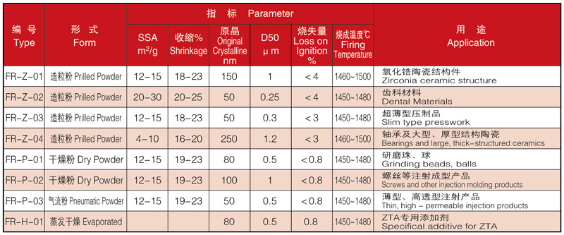 本公司以自蔓延水解工艺生产Y-PSZ粉体,通过Y2O3含量不同的调整,生产不同类别Y-PSZ粉体。常规粉体以3Y-PSZ粉体为主,根据客户工艺的不同分为压制粉和非压制粉,其物理性能分别满足客户对于干压、等静压、注射、流延、热压铸、注浆等成型条件的要求。