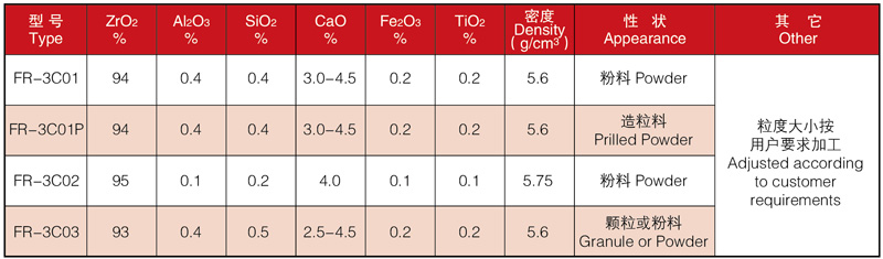 用特殊工艺生产Ca-PSZ粉体,通过CaO含量不同的调整,可生产不同类别Ca-PSZ粉体。常规粉体以3.0%-4.5%的CaO含量为主,其它CaO含量可以调节。