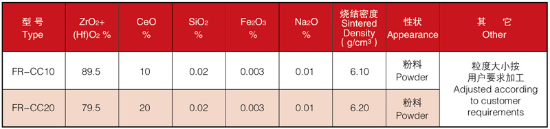 用特殊工艺生产Ce-PSZ粉体,通过Ce含量不同的调整,可生产不同类别Ce-PSZ粉体。