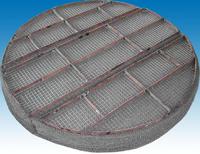 丝网除沫器主要是由丝网、丝网格栅组成丝网块和固定丝网块的支撑装置构成,丝网为各种材质的气液过滤网,气液过滤网是由金属丝或非金属丝组成。气液过滤网的非金属丝由多股非金属纤维捻制而成,亦可为单股非金属丝如PP聚丙烯和PTFE聚四氟乙烯等工程塑料,也可以采用混编型气液过滤网如金属与聚丙烯或聚四氟乙烯等工程塑料混编、金属与各种纤维混编等。