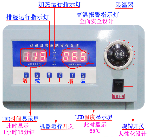 药材的成熟度 未成熟的药材加工干燥后外表干瘪、皱缩,内部质量差。中草药过熟后加工质量也不好。本公司销售的药材烘干机是使用的220电压,设定加热温度和时间就可以了,到了时间机器自动报警停止加热 温度 温度不仅影响干燥速度,而且影响化学成分存在的状况。温度过高会使挥发油大量丧失,有效成分降低,还会使药材枯焦。 水分 加工用水清洁度很重要,水浑浊或盐碱高会污染药材,使之失去色泽等。雨后采收的菊花、红花干后会粘结成团,色泽暗淡。 化学成分 加工过程中,药材的化学成分不断发生变化。加工不当,有些成分会丢失或变质;如不及时干燥,皂甙成分易分解损失;使用铁器切削,鞣质会变黑等。 辅助材料 如白芍浸渍加入玉米粉浆、豌豆粉浆能抑制氧化变黑,附子加工需用盐或盐卤,贝母加工要加蚌壳灰等。药材初加工,都要在加工过程中加入不同的辅料,辅料质量好坏对药材也有较大影响。