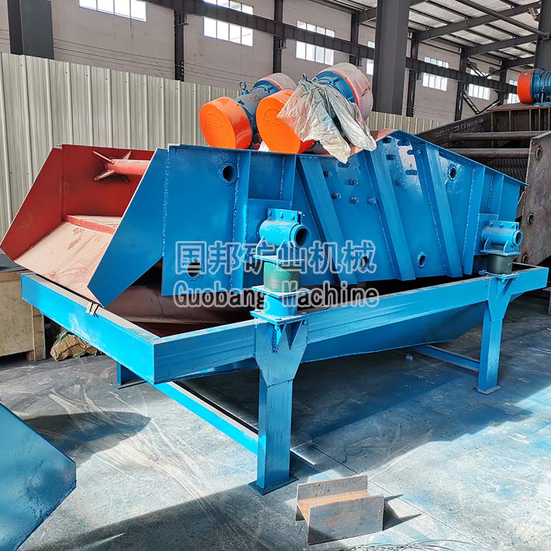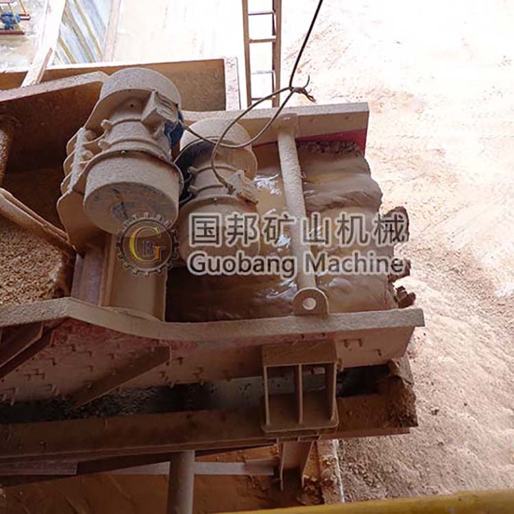 脱水筛采用了双电极自同步技术,通用型偏心块、可调振幅振动器。主要由筛箱、激振器、支承系统及电机组成。通过胶带联轴分别驱动两个互不联系的振动器作同步反向运转,两组偏心质量产生的离心力沿振动方向的分力叠加,反向离心抵消,从而形成单一的沿振动方向的激振动,使筛箱做作往复直线运动。