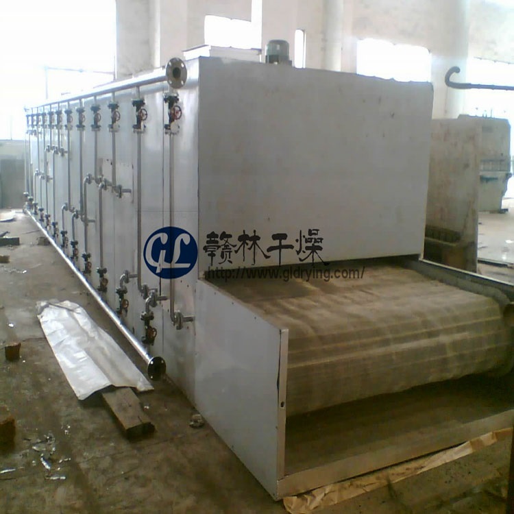 原料 ——> 倒入加料斗内 ——> 提升机——> 网带式干燥机