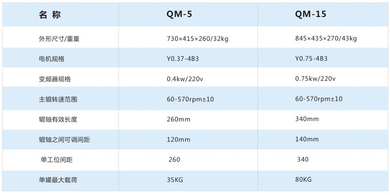 3.通过调整从动胶辊可以使用一定范围内的不同外径的球磨罐;