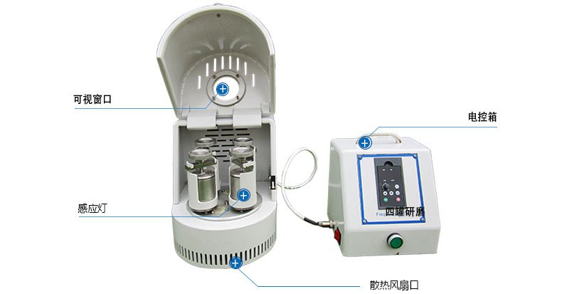 设备外壳采用半圆形设计元素,高精密模具冲压成型,大方精致,高端稳重;机加零件采用数控加工工艺,行星盘整体铸造成型,传动齿轮选用特殊材质精密齿轮,确保设备高速运行时平稳安静;磨罐压紧装置操作便捷、安全可靠。