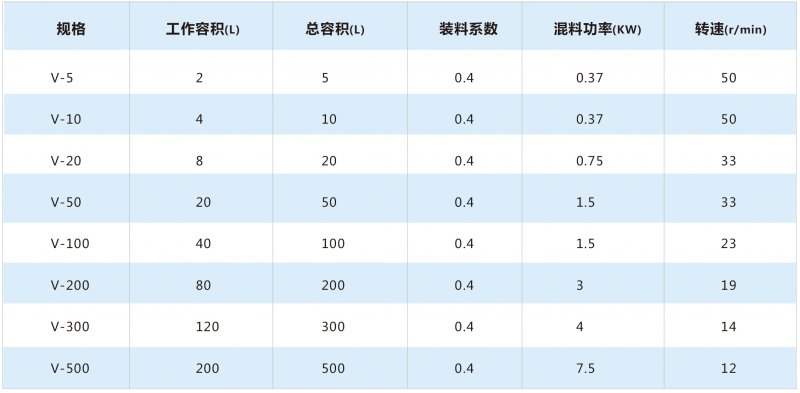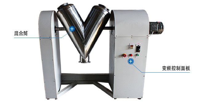 V型混合机用于对粉体均匀混合。适用于制药、食品、化工、冶金、电子等行业对两种以上的干粉状、颗粒状物料的混合。V型混合机混合筒结构独特,通过机械传动使V型圆柱体内的物料做往复翻动,达到均匀混合目的。V型混合机混料筒一般用不锈钢制作,内外壁抛光,结构设计上保证无积料死角,具有筒体无死角,不积料,速度快,混合时间短的特点,清洗方便。