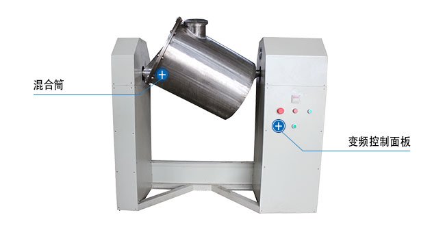 斜式混料机采用筒体中心与水平面成夹角的结构,造成工作时物料运动无规则,从而达到混料均匀无死角。