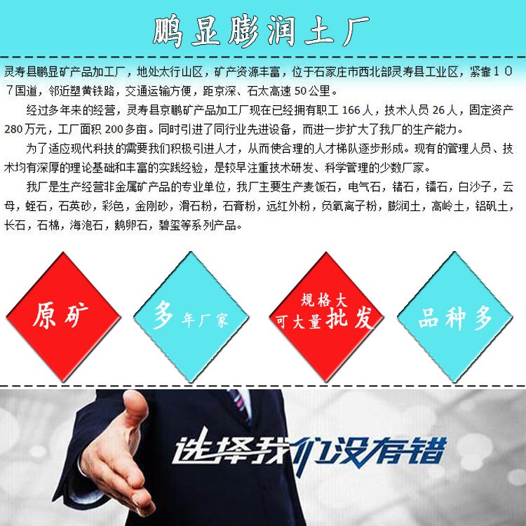 3、遮盖力:膨润土具有一定的粘合力和遮盖力,而且价格低廉,把它加到聚乙烯醇系列涂料当中,可使聚醇和填料(比如轻质碳酸钙)的用量大为减少,从而使成本降低。