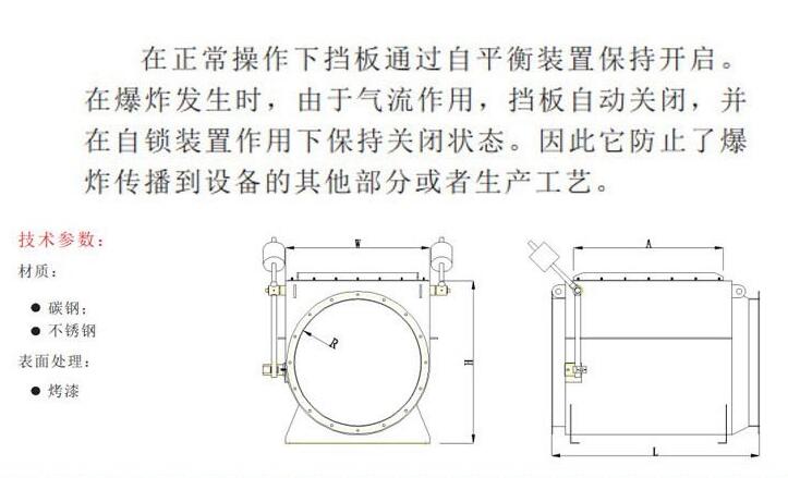 隔爆阀,重力式设计,无需传感器触发,有常开式和常闭式;