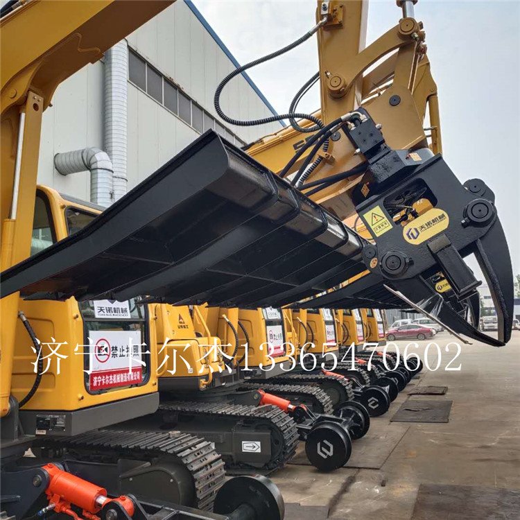 挖掘机枕木夹具是我公司新设计生产的铁路维护属具工作装置之一,它是可以通过快换连接器安装到挖掘机上的前端工作装置。适用于6-13吨挖掘机使用。