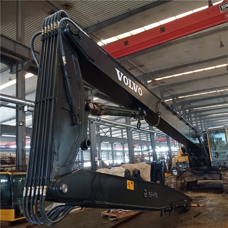 25-34吨位挖掘机加长臂,可加长到20米,其配置为:挖斗1个、铲斗油缸1支、销轴6支、 高压软管4条、黄油管3条、连杆总成1套、运输连杆1套、加长大臂(11米)、加长小臂(9米)。