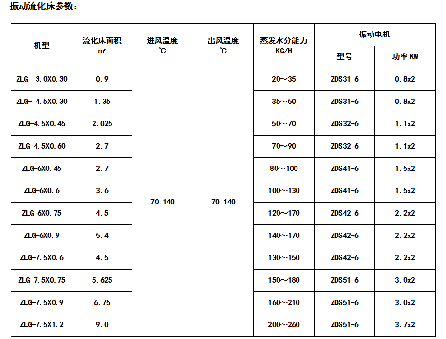 | 7、振动有助于物料分散,如选择合适振动参数,对普通流化床易团聚或产生沟流的物料可顺利流化干燥; |
