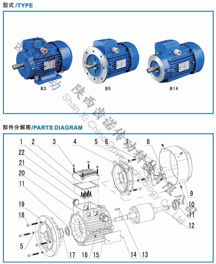 从0.06KW-75KWw的功率等级覆盖范围,8种机座规格。 接线座与机体整体铝合金压铸结构,密封性好,完全符合IP54、IP55的外壳防护等级标准。