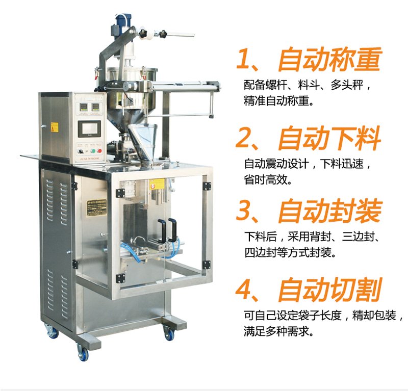 适用于食品、化工等各种粉末、超细粉末等,如奶粉、豆奶粉、中药粉、调味粉末等物料包装。