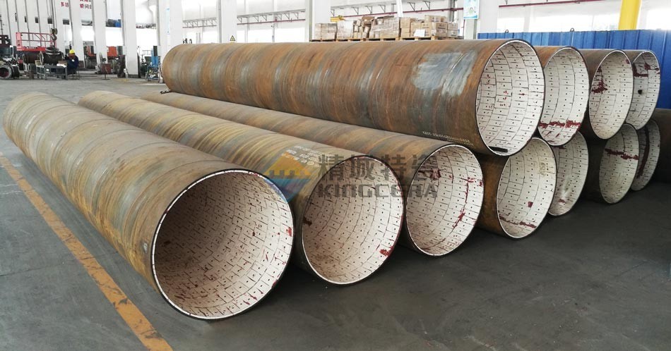 螺柱焊接型耐磨陶瓷管道是将增韧处理的超厚耐磨陶瓷通过先进的螺柱焊工艺焊接在钢管内壁,形成坚固的防磨层。本产品是专为工作温度高的设备防磨开发的。*耐温500℃。