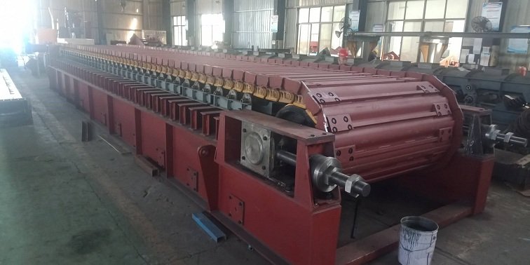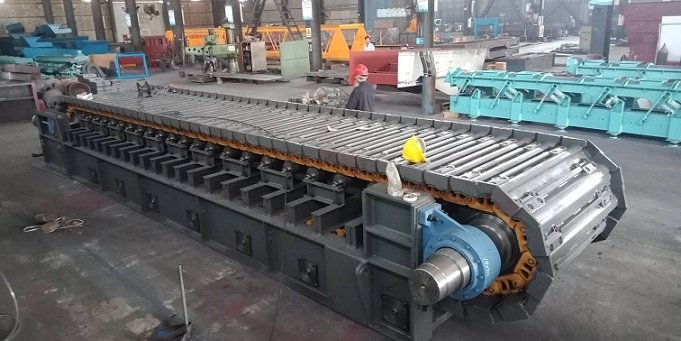 (7)辊式喂料机筛下物与原板喂机下方刮板机下料溜子制作为一体。