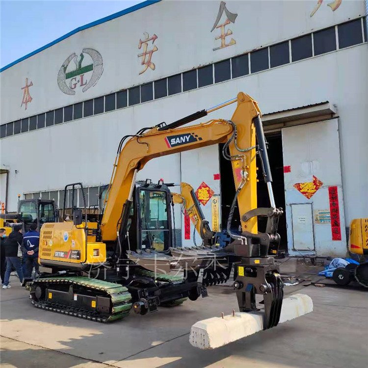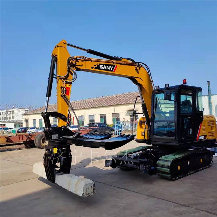 挖掘机枕木夹具是我公司新设计生产的铁路维护属具工作装置之一,它是可以通过快换连接器安装到挖掘机上的前端工作装置。分为横置式、伸缩式(5抓、7抓等)。适用于5-16吨挖掘机使用。