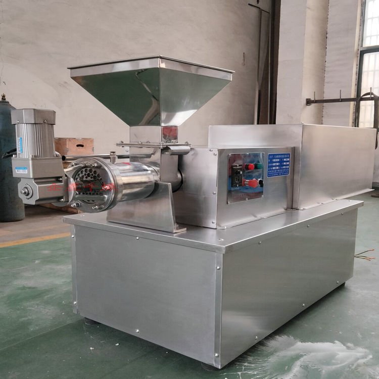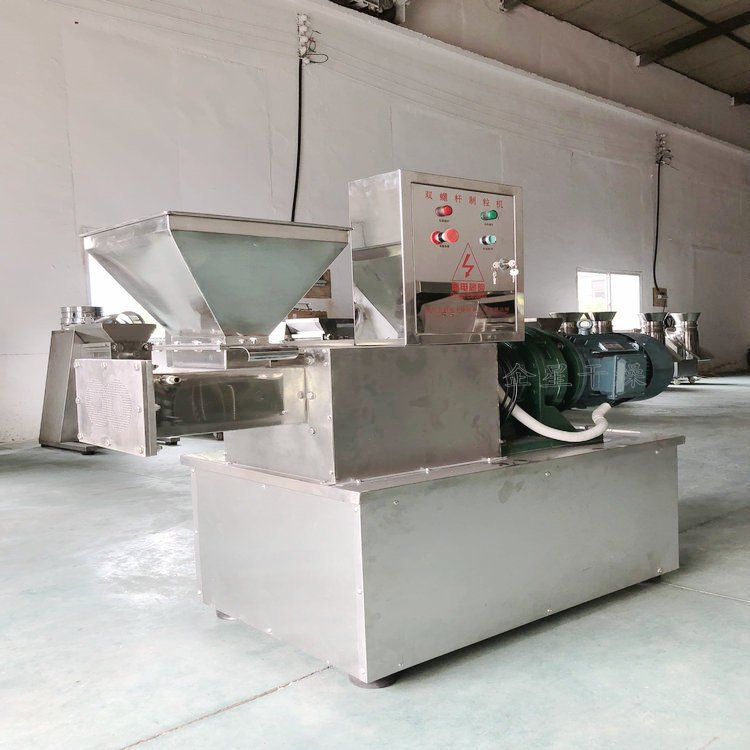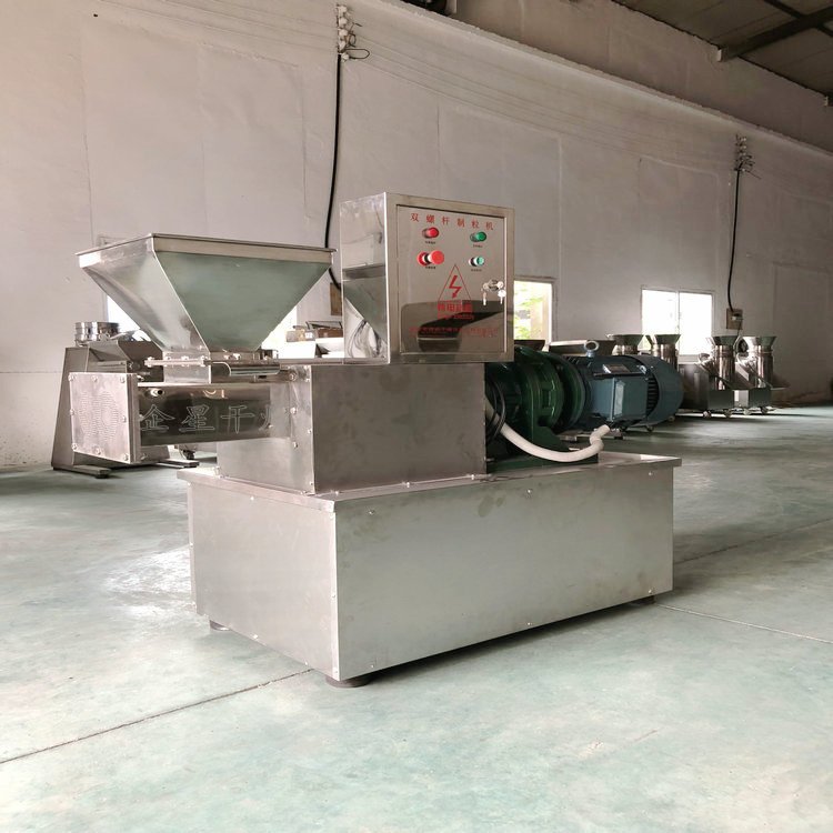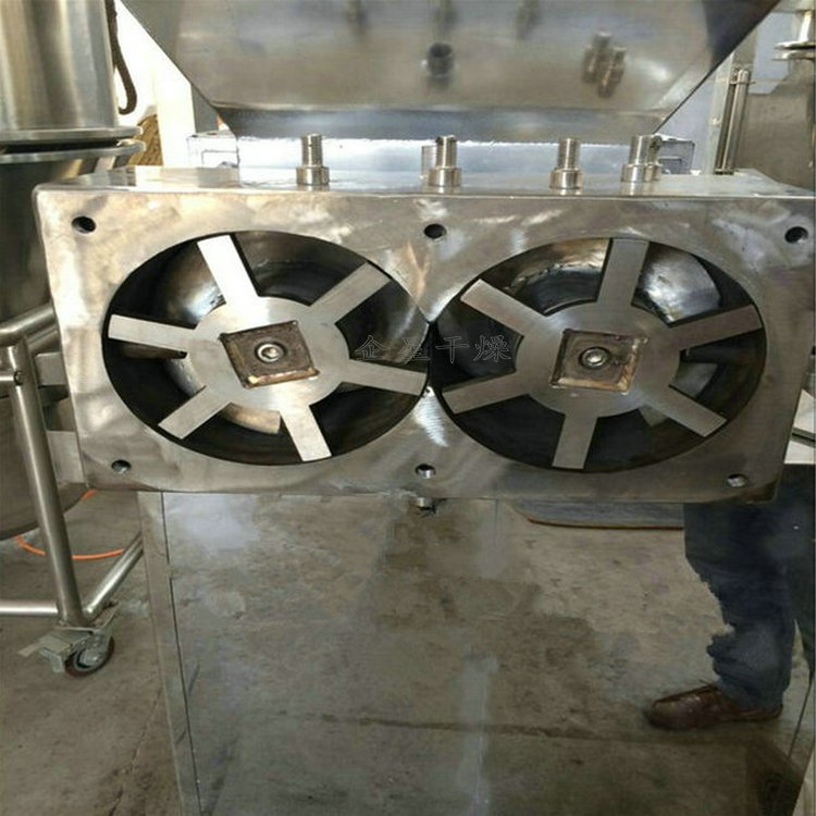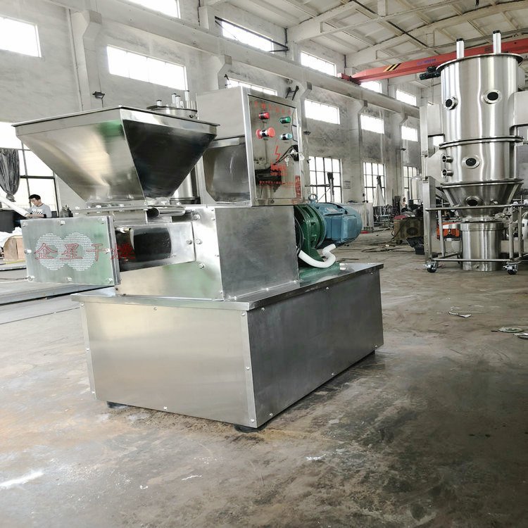 SET系列单螺杆挤出造粒机由料斗、料筒、螺杆加料段、螺杆压实段、旋转切刀、模板、压板、机架、轴承系统、传动系统和电气控制系统组成。粉状物料与粘结剂混捏好后,经加料斗进入造粒机,经螺杆压实段压实后由模板挤出形成颗粒,颗粒形状为柱状、条状。并根据用户物料的特性,带有强制加料和颗粒切断装置。该机可广泛应用于:医药、农药、肥料、饲料、食品、催化剂、化学药品等行业的粉体造粒。 适用范围 广泛适用于橡胶助剂、食品添加剂、塑料助剂、无机、有机、催化剂、农药、染料、颜料、日化、制药等 行业需造粒的产品。 典型物料 滑石粉、陶土、复合肥料、催化剂、白碳黑、NPK复混肥料、氰化钠、葵二酸、杀虫剂、灭鼠剂、中成药冲 剂、选矿药剂、饲料、橡胶硫化促进剂M,DM,TMTD,CZ,塑料加工助剂,食品添加剂等。 准备出厂的 DLG-180挤出造粒机(颗粒直径(P0.5~1.2mm) 技术优点 1、结构紧凑,操作方便,采用标准摆线针轮或行星齿轮减速机,输出扭矩大; 2、根据客户要求,可采用定转速输出,或变频调速、电磁调速、机械式调速等无级调速方式。 3、挤压力均衡,颗粒强度高; 4、通过调换模板可以方便的改变粒径; 5、适用面广,易损件易更换,便于清洗; |