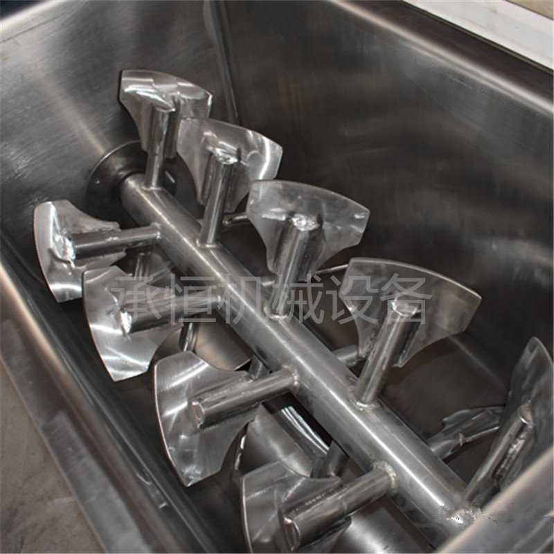 混合机底部出料方式:粉体物料采用气动大开门结构形式,具有卸料快、无残余等优点; 高细度物料或半流体物料采用采用手动蝶阀或者气动蝶阀,手动蝶阀经济适用,气动蝶阀对半流体的密封性好,但造价比手动蝶阀高。在需要加热或冷却的场合,可配置夹套。加热方式有电加热和导热油加热两种方式可选:电加热方便,但升温速度慢,能耗高;导热油加热需要配置油锅和导油动力、管道,投资较大,但升温速度快,能耗较低。冷却工艺可直接向夹套内注入冷却水,夹套换热面积大,冷却速度快。电机与搅拌主轴之间通过摆线针轮式减速机直联,结构简单,运行可靠度高,维护方便。