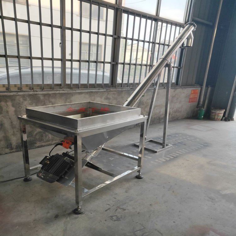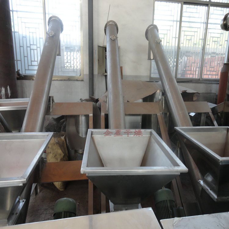 我公司生产的螺旋上料机可广泛用于食品,医药,化工,塑料生产过程中的粉粒料,片料的传送上料。储料箱与输送管均采用不锈钢制作,保证了原料在输送过程中完全不受污染。系统中设有时间继电器,可根据每次上料量来设定上料量时间.