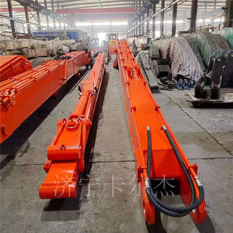 济宁卡尔杰机械加长臂:加长臂主要用于深坑作业的地基工程、高空作业的楼房拆卸和河道清理等领域,可以高效快捷地完成工程要求的各项指标。加长臂可分为两段式加长臂和三段式加长臂,两段式加长臂主要适用于深堑挖掘和河道清淤工作,三段式加长臂主要适用于高层建筑的拆卸等工程。