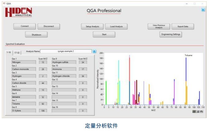 1. QGA 专业版定量气体分析软件:提供多达32种气体定量分析的简化用户界面。