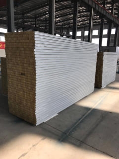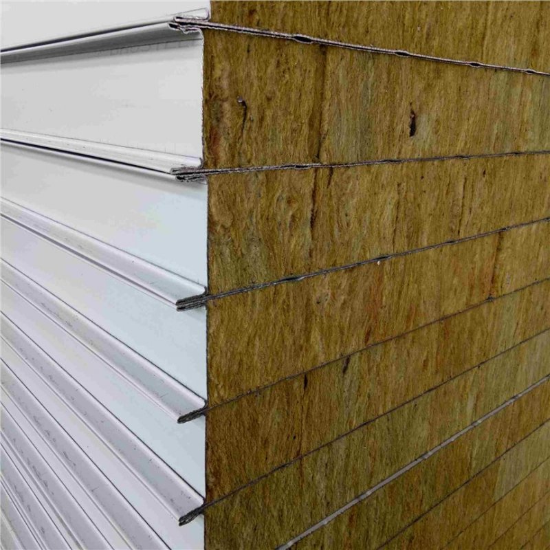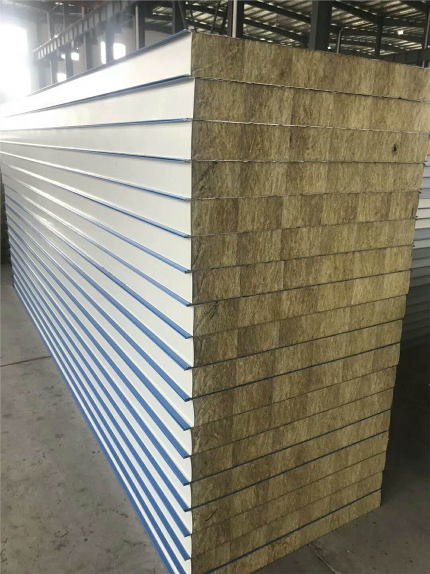 岩棉夹芯板是一种以岩棉为原料制成的夹心板。岩棉夹芯板充分发挥了岩棉芯材的独特性能,在防火,保温隔热,吸音隔声等方面有着显着的功效。 岩棉夹芯板的缺点是强度不够强,但适用于钢结构厂房、简易活动房的屋面、墙体、空气洁净室的吊顶与隔断等地点。 优点 岩棉夹芯板充分发挥了岩棉芯材的独特性能,在防火,保温隔热,吸音隔声等方面有着显着的功效。 1、防火性能优异:岩棉夹芯板采用的原材料,生产工艺及配方,使它具有很好的防火性能。试验表明,它具有超过1000°C的耐火能力。岩棉夹芯板已通过意大利权威检测机构GLOROANO S.P.A的测试,依照国际标准化组织(ISO)、英国BS以及德国DIN的标准,岩棉夹芯板满足防火标准M.I14/09/61函91号和D.M.30/11/83的要求。试验结果如下:1)50mm厚岩棉夹芯板RE130 80mm厚岩棉夹芯板REL60 100mm厚岩棉夹芯板REL 120 2)保温隔热性好:岩棉夹芯板的保温隔热性能是以岩棉的导热系数=0.043W/㎡K为依据,以相应比例的岩棉芯材的厚度计算求得的。 3)吸声隔热效果显着: 隔声:岩棉夹芯板对噪声传递有显着的消减作用,特别适用于有指定航班通过的地方。另外,采用了岩棉屋面板后,雨水、冰雹对建筑物的屋面钢板冲击而引起室内声响,也明显减弱。通过测试,按照ISO 717/82和UNI 8270/7标准,选用密度为120kg/m?岩棉作芯材的夹芯板,隔声效果可达到RW=29-30 dB 吸音:岩棉夹芯板同时具有极好的吸引效果,它能吸收比较广频率范围内的声音。按照ISO 35/85标准 ,岩棉夹芯板吸音性能水准达到DELTA LA=15.7dB(A)..