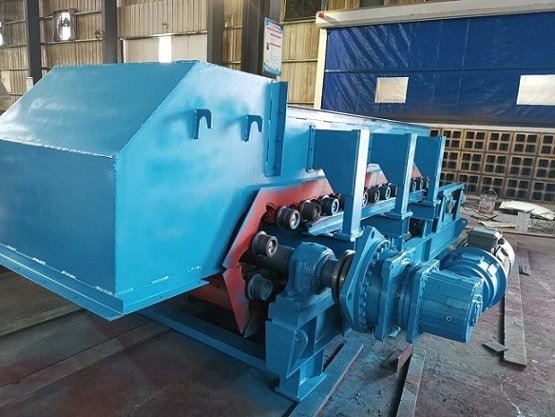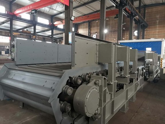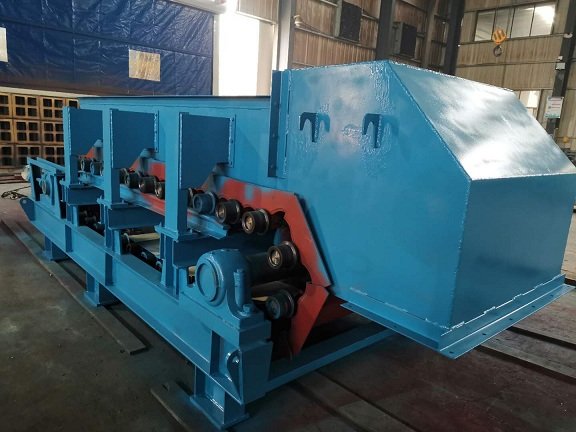 导料板的长度通常由进料方式确定,如果板式给料机是放在料仓下面,那么在料仓下面就不需要设计导料板,料仓往外到驱动轴这一段就要设计导料板。如果是通过装载机往板式给料机供料,则板式给料机全段都要设计导料板。