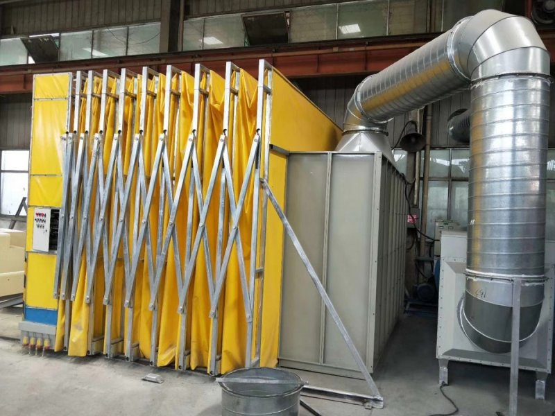 伸缩移动喷漆室是一种可以在使用时,可以自动展开形成封闭或半封闭的环保喷漆室,不使用时收缩合拢到一处的特殊环保喷漆室设备,他是先进喷漆室的设计理念及技术的集成,使用广泛。伸缩喷漆室专门解决较大型工件移动运送困难而研制的实用型环保喷漆房,它可根据使用大小,任意调整,减少对工作产地的占用。无需设备专门的移动平台,只需要配套车间的行车即可对工件进行周转。