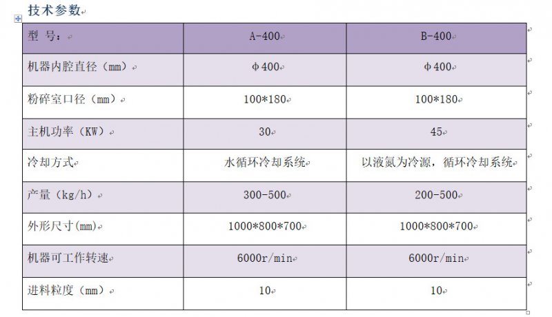 该产品结构新颖,采用宽腔体带水夹套结构,有四组冷却通道,冷却效果理想,能有效地防止粉末粘腔、粘力现象。由于严格的动平衡校验工艺,使得机器运行平稳,噪声低,使用时间长。机器体积小、安装方便、节能、班产量高、故障率低,适用多种行业的固体物料粉碎。