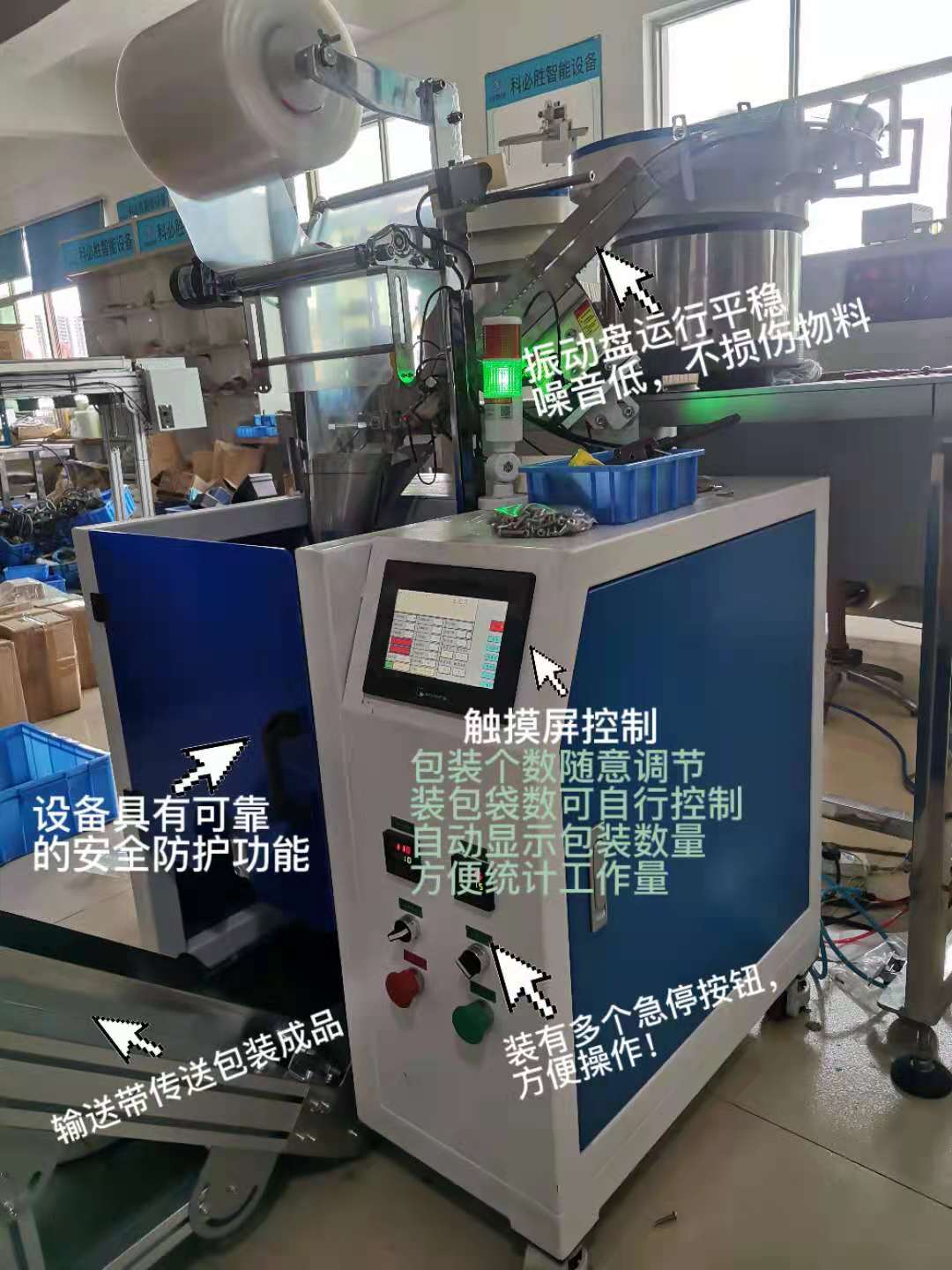 螺丝螺母包装机针对螺丝样品量身定做的振动盘,直线滑轨排列装置和精密的计数控制装置,确保每袋准确无误;