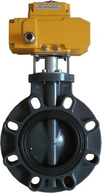 具有优良的耐化学腐蚀性能UPVC电动蝶阀,适用于各种强腐蚀性低压常温介质流体的开关、切断、调节领域。