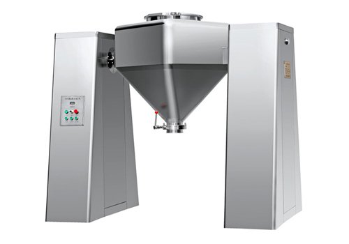 方锥混合机是将物料装入方锥形密闭混合桶内,料斗对称的轴线与回转轴轴线成一夹角,不同组分物料在密闭的料斗中进行三维空间运动,产生强烈翻转和扩散收缩作用,达到优质的混合效果