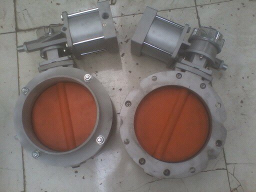 铸铝粉体卸料碟阀阀芯是两个阀瓣组成,中间一个阀板,里面有密封圈,阀板中间有一个花键轴,花键轴有一头用来连接气缸(气动执行器)适用范围:混凝土搅拌站及干性粉料。