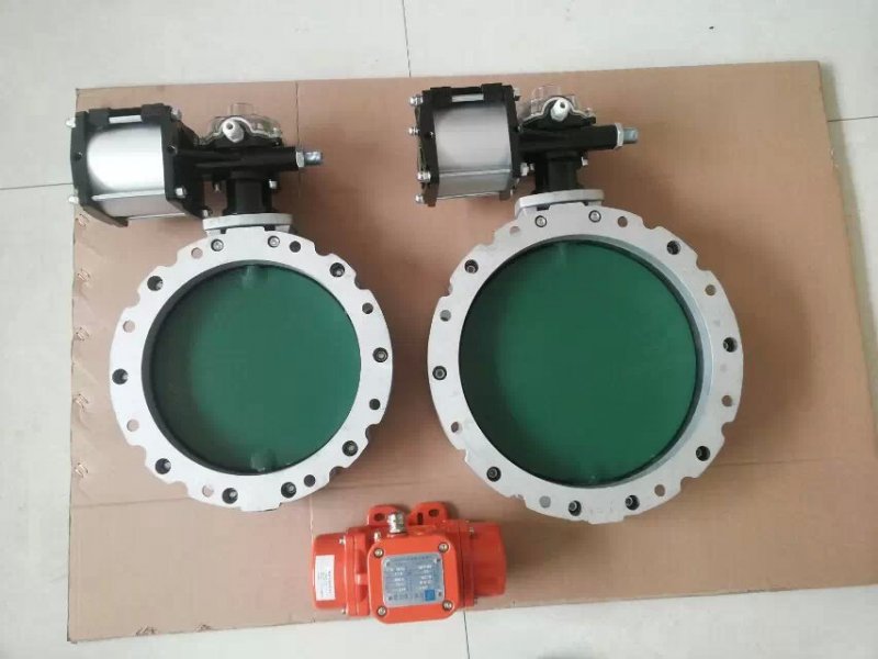 铸铝粉体卸料碟阀能耐高温,适用压力范围也较高,阀门公称通径大,阀体采用碳钢制造,阀板的密封圈采用金属环代替橡胶环。大型高温蝶阀采用钢板焊接制造,主要用于高温介质的烟风道和煤气管道。