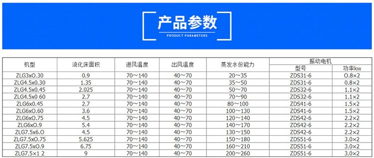 ZLG系列振动流化床干燥设备水产饲料生产颗粒物料连续烘干机物料自进料进口进入机内,在振动力作用下,物料沿水平面流化床抛掷,向前连续运动,热风向上穿过流化床同湿物料换热后,湿空气经旋风分离器除尘后由排风1:3排出.干燥物料由排料进口排出。