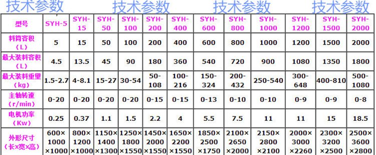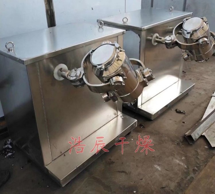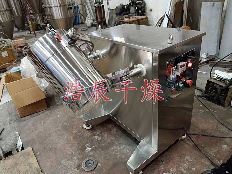 装料的筒体在主动轴的带动下,作周而复始的平移、转动和翻滚等复合运动,促使物料沿着筒体作三向复台运动,从而实现多种物料的互相流动、扩散、积聚、掺杂.以均匀混合的目的。