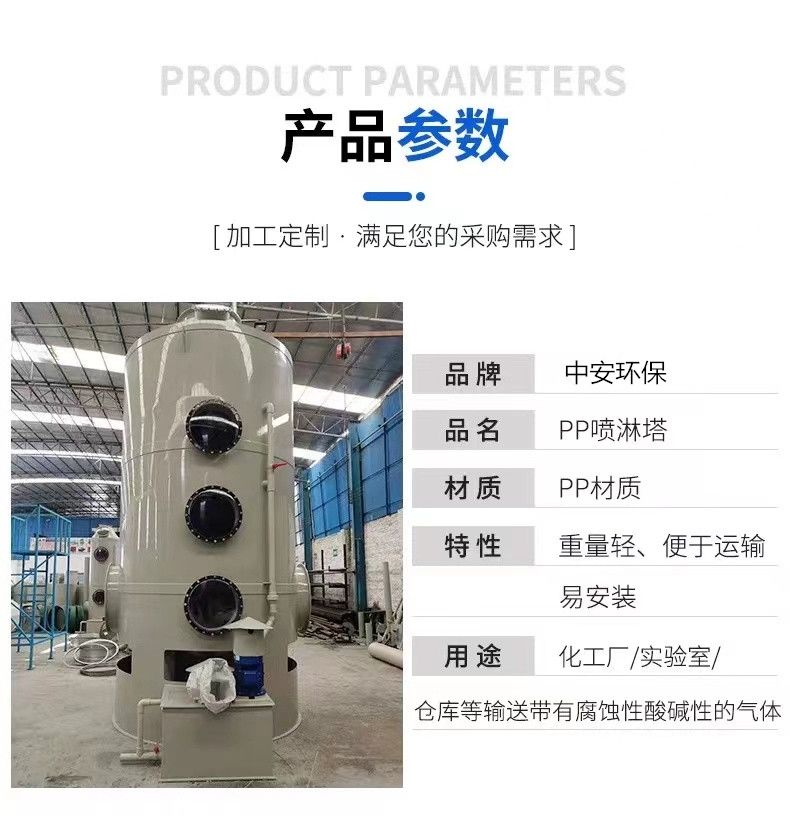 PP喷淋塔吸污处理设备对于腐蚀性气体(如酸,碱性废气)的治理,目前多采用液体吸收法治理。
