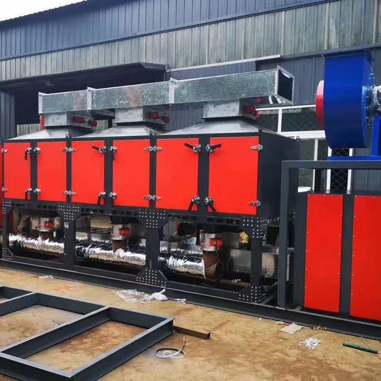 这种属于比较基本的流程工艺,由于催化剂都有一个主要原理是有基废气的温度在100℃以下并且浓度较低的情况下,这种情况热量一般是不能自给的,因此需要在进入反应器之前,需要在预热室内对其进行加热升温。一般所采用的预热方式主要有煤气或电加热,这二种方式可以将废气升温到催化反应所需要的起燃温度,从而达到燃烧氧化分解的目的,燃烧氧化后的气体在热交换器内和没有处理的废气进行热交换,从而可以回收部分的热量。