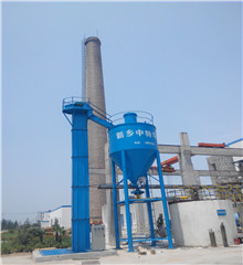 于被离心分离,在高速呈紊流状态中,由于水滴与尘粒差别大,他们的速度差也很大,这样灰粒与水滴就发生碰撞凝聚,分离。然后烟气通过扁而宽的进气烟道底端出口,以高速冲击水面,并翻过隔墙底部,改变运行方向进入主除尘塔内,而尘粒和烟气由于惯性仍按原方向冲击塔体,由于水从除尘器上部注水槽进入主塔,使整个塔体内壁形成一层水膜从上而下流动,烟气由塔体下部切向进入,在筒体内旋转上升,含尘气体在离心力作用下始终与塔体内壁上的水膜发生摩擦,这样含尘气体被水膜湿润,尘粒随水流到除尘器底部,从溢水孔排走,在塔体底部封底并设有水封槽以防止烟气从底部漏出。除尘后废水由底部溢流孔排出进入沉淀池,沉淀中和,循环使用。净化后的气体通过主塔体上部进行脱水处理后进入副塔再进行沉降、分离脱水后,净化的烟气通过副塔底部排入引风机,完成除尘设备的工作过程。
