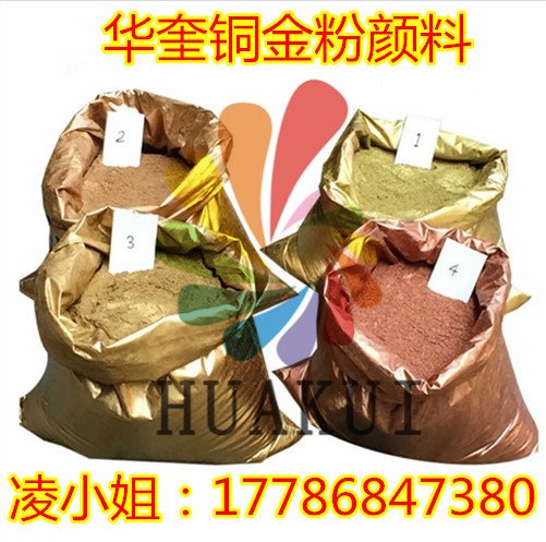 广州华奎铜金属粉是一种浮型片状颜料,由一定比例的铜、锌和铝合金,经熔炼、球磨、分级到所需要的规格和效果而成。铜金粉的色相可分为黄金粉、青金粉、红金粉、紫铜粉、古铜粉等。