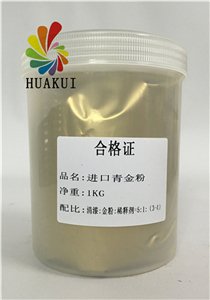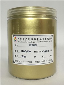 广州华奎铜金属粉是一种浮型片状颜料,由一定比例的铜、锌和铝合金,经熔炼、球磨、分级到所需要的规格和效果而成。铜金粉的色相可分为黄金粉、青金粉、红金粉、紫铜粉、古铜粉等。