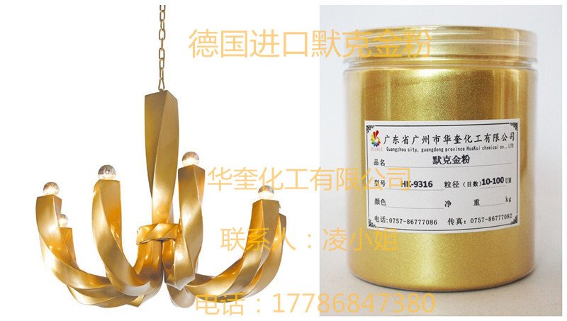 主要优点:金色色泽更为强烈、镜面光泽效果更好、具备相当好的特殊的流平性能,较进口高档珠光粉更合理的性价比,是金粉漆、金箔漆、佛像漆常用默克金色珠光颜料,该产品所加工的金箔漆,在广告字牌、装璜工程、寺庙、酒店、歌舞厅、玩具、工艺品装饰、美缝剂(娱乐场所,洒店,宾馆,别墅等装璜)等等需要明亮黄金色彩的应用领域中,具有不可替代的作用。本产品无毒环保,耐800度高温,水油两用。