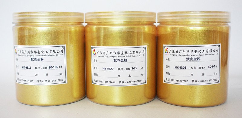 金箔粉由新型合成高透明度片状晶体底材,包覆二氧化钛等金属氧化物组成,通过精密控制二氧化钛等金属氧化物的包覆厚度,产生黄金颜色一样的效果。特殊钻石珑光泽效果颜料赋予一个全新的、璀璨的、星光闪烁的、钻石般的光学维度空间及美妙的色调,这些富于情感的色彩及光泽,使终端产品的美丽、个性及品质得以充分展示。广州华奎化工珠光颜料主要包括珍珠银白色系列、金色系列、铁色系列、幻彩系列、彩色系列。