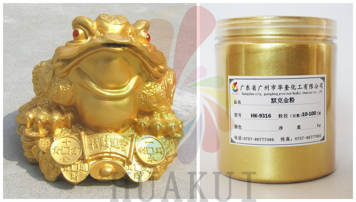 高亮闪的999黄金粉又称金箔粉,做出产品颜色纯正,亮度高,适用于铁艺,工艺品,佛像,雕塑等工程。些效果并非普通珠光粉可比拟.