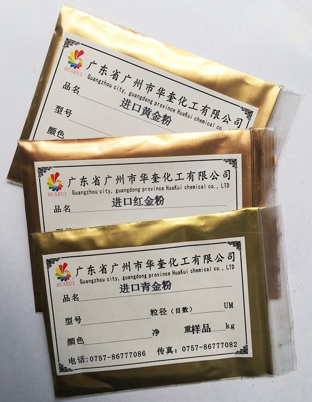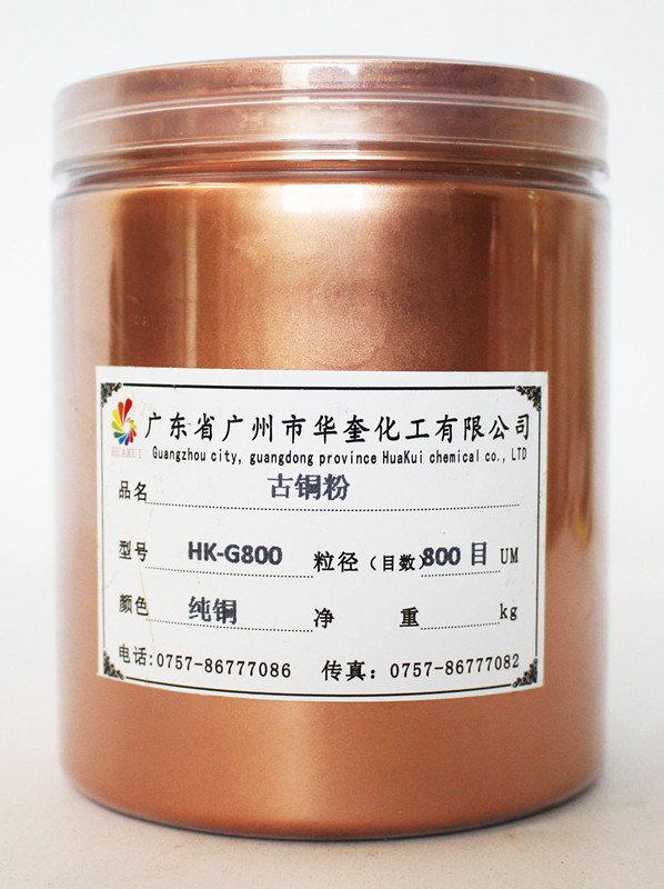 铜金粉是一种浮型片状颜料,由一定比例的铜、锌和铝合金,经熔炼、球磨、分级而成。其颗粒越粗,金属感越强,越闪烁,但遮盖力较差,反之,颗粒很小,其金属感越弱,色泽也越柔和,其遮盖力也越好。根据不同的应用领域和所需达到的金属效果,可通过选择不同颗粒直径和色相来实现。铜金粉专业零售批发17786******,华奎颜料产品的优势是:具有优异的颜色稳定性及重现性,具有逼真的金属视觉效果,贮藏稳定,耐久性好,耐候性好,附着牢固等特点。华奎彩铜金粉是高档环保铜金粉,通过SGS检测,金属光泽强,稳定性能好,色泽纯正亮丽,金属感特强、特亮、特闪、遮盖力强、抗氧化性能强、每批次产品性能稳定,华奎颜料实力雄厚,供货能力强,长期大量批发供应铜金粉系列。本品广泛应用于油漆、油墨、涂料、塑胶、硅胶、印刷、印花、皮革、玩具、工艺品等行业。根据不同的应用领域和所需达到的金属效果,可通过选择不同颗粒直径和色相来实现。