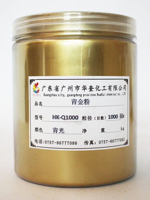 铜金粉是一种浮型片状颜料,由一定比例的铜、锌和铝合金,经熔炼、球磨、分级而成。其颗粒越粗,金属感越强,越闪烁,但遮盖力较差,反之,颗粒很小,其金属感越弱,色泽也越柔和,其遮盖力也越好。根据不同的应用领域和所需达到的金属效果,可通过选择不同颗粒直径和色相来实现。铜金粉专业零售批发17786******,华奎颜料产品的优势是:具有优异的颜色稳定性及重现性,具有逼真的金属视觉效果,贮藏稳定,耐久性好,耐候性好,附着牢固等特点。华奎彩铜金粉是高档环保铜金粉,通过SGS检测,金属光泽强,稳定性能好,色泽纯正亮丽,金属感特强、特亮、特闪、遮盖力强、抗氧化性能强、每批次产品性能稳定,华奎颜料实力雄厚,供货能力强,长期大量批发供应铜金粉系列。本品广泛应用于油漆、油墨、涂料、塑胶、硅胶、印刷、印花、皮革、玩具、工艺品等行业。根据不同的应用领域和所需达到的金属效果,可通过选择不同颗粒直径和色相来实现。
