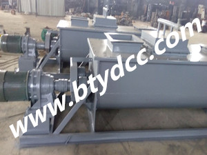 二、双轴粉尘加湿机工作原理:装有一对高强度的搅拌轴,轴上以一定角度及螺距分布着多片扇型搅拌叶片,两根搅拌轴反向旋转对加湿的干灰进行均匀搅拌、螺旋输送。 其优点是搅拌效率高,系统密封严密,无飞灰外扬。减速机结构紧凑,占地面积小,传动平稳,噪音低,搅拌均匀,叶片耐磨性好,操作维修方便,运行可靠。