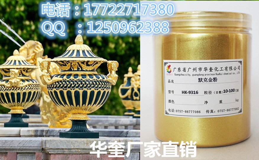 高亮闪的999黄金粉又称金箔粉,做出产品颜色纯正,亮度高,适用于铁艺,工艺品,佛像,雕塑等工程。些效果并非普通珠光粉可比拟。